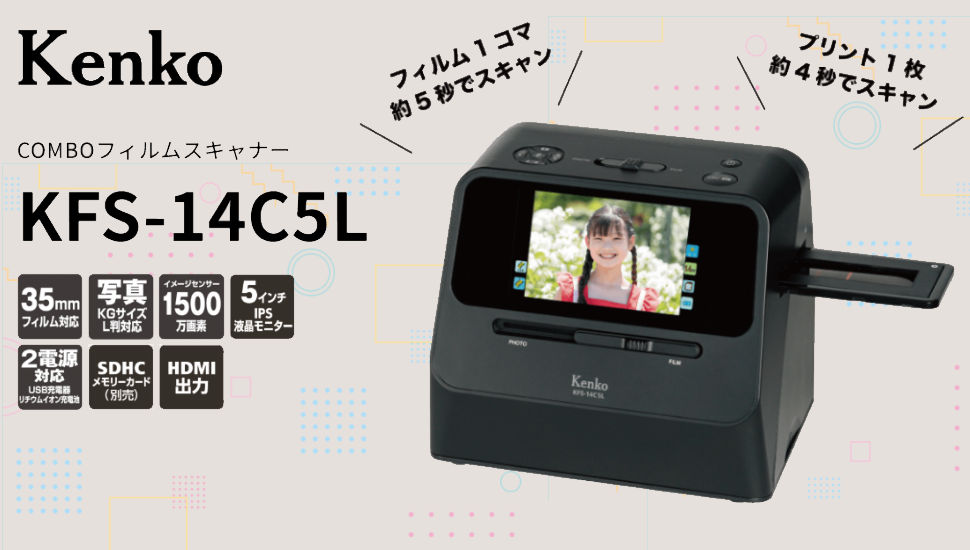 | ▼ケンコー COMBOフィルムスキャナー KFS-14C5L 【メーカー保証】1年間 【付属品】USB充電器、リチウムイオン充電池(BL-5C)、USBケーブル、HDMIケーブル、マウント用ホルダー、6コマ用ホルダー、清掃用ブラシ、取扱説明書 【生産国】確認中 |