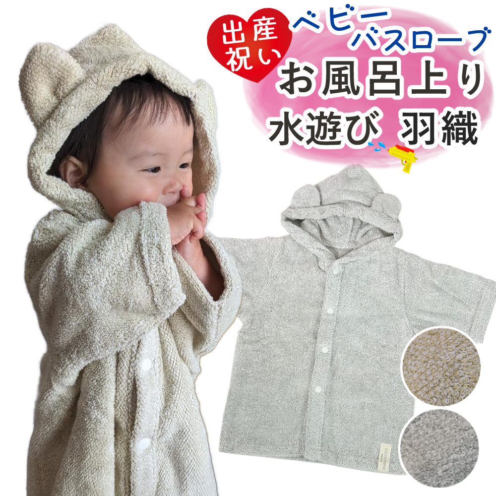 軽さを感じる使い勝手の良いタオル生地のベビーバスローブです。
