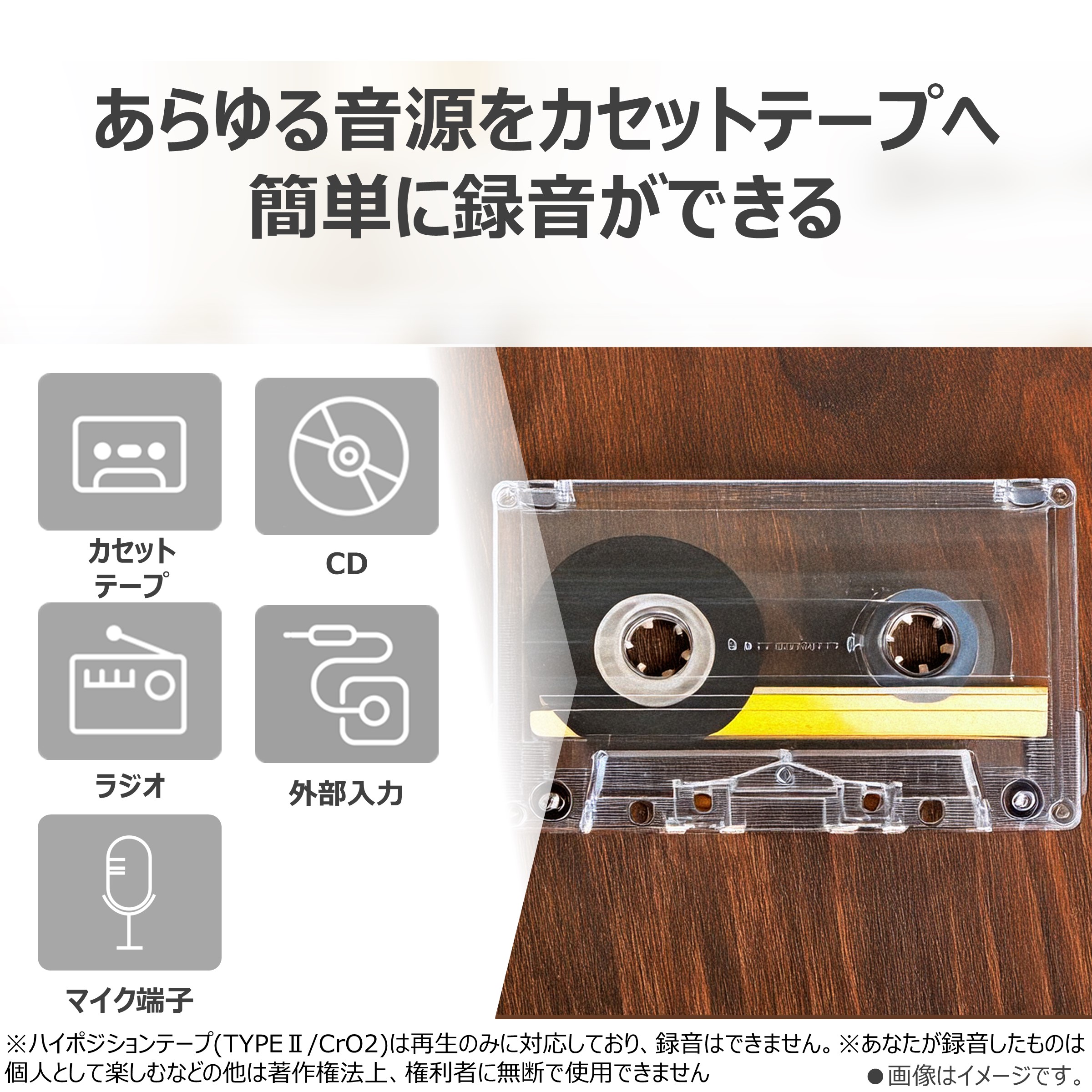 ※ハイポジションテープ(TYPEII/CrO2)は再生のみに対応しており、録音はできません。