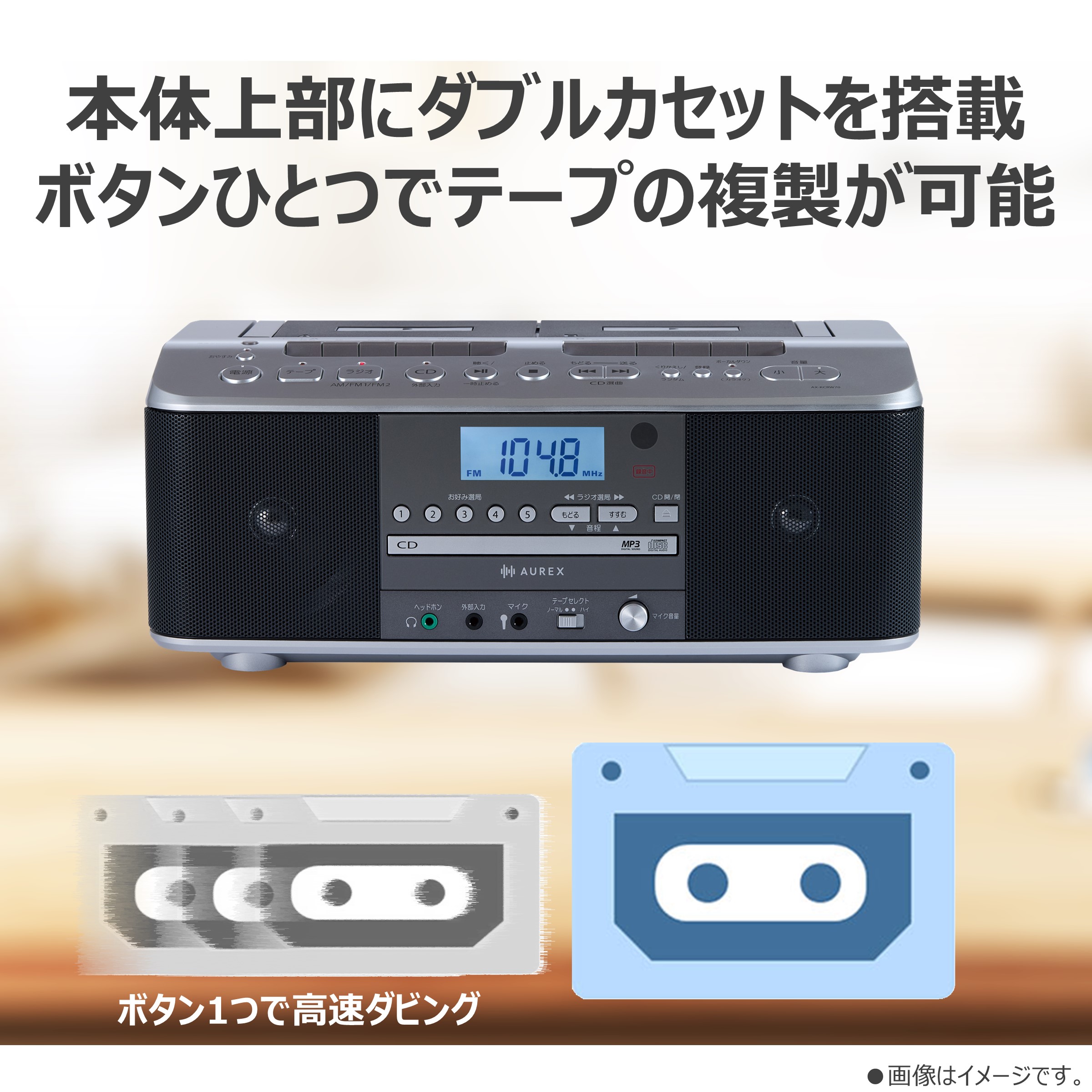 カセット同士の録音が楽になる Wカセットラジオ