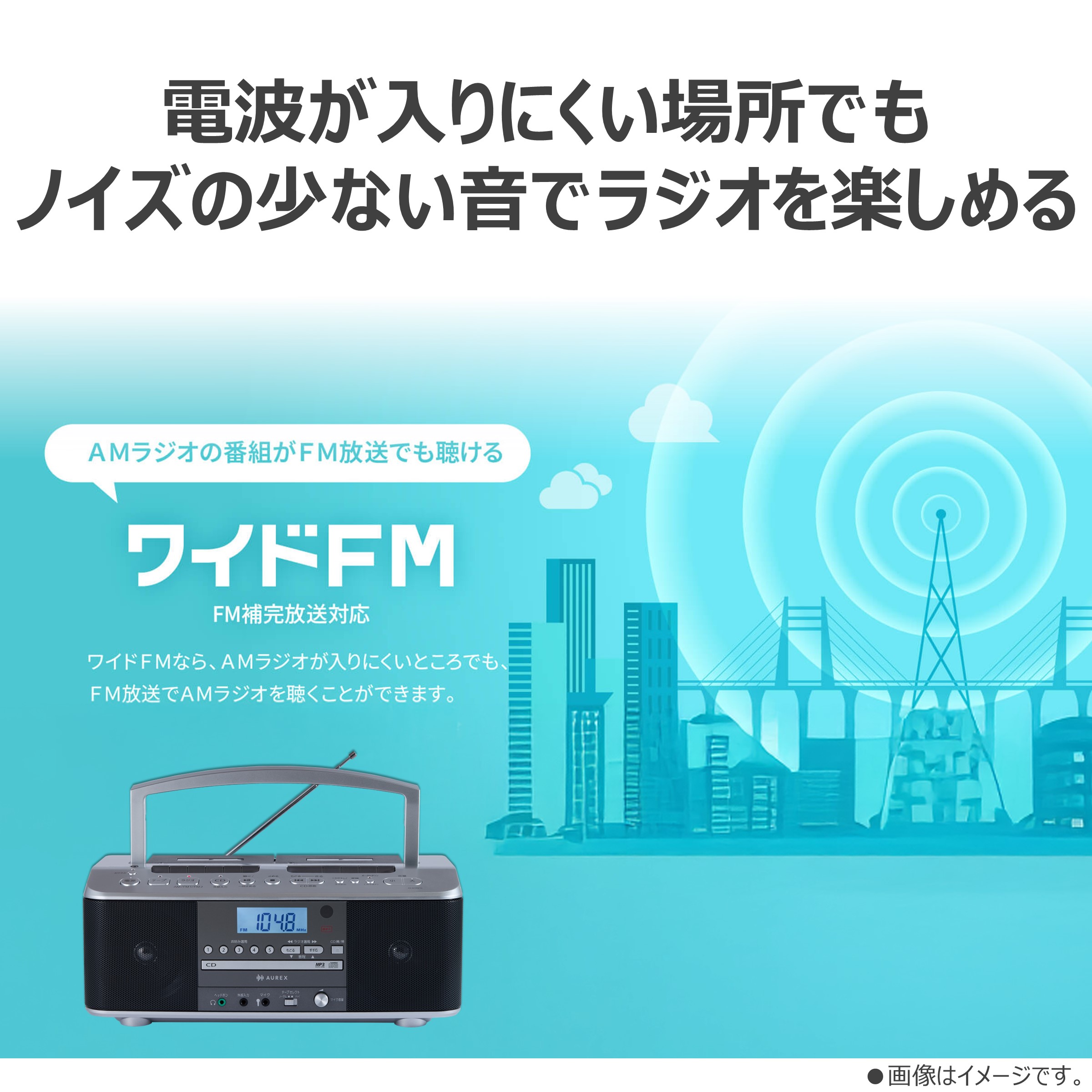 | ラジオ部 受信周波数 | FM:76.0~108.0MHz(0.1MHzステップ) AM:531~1,710kHz(9kHzステップ) |