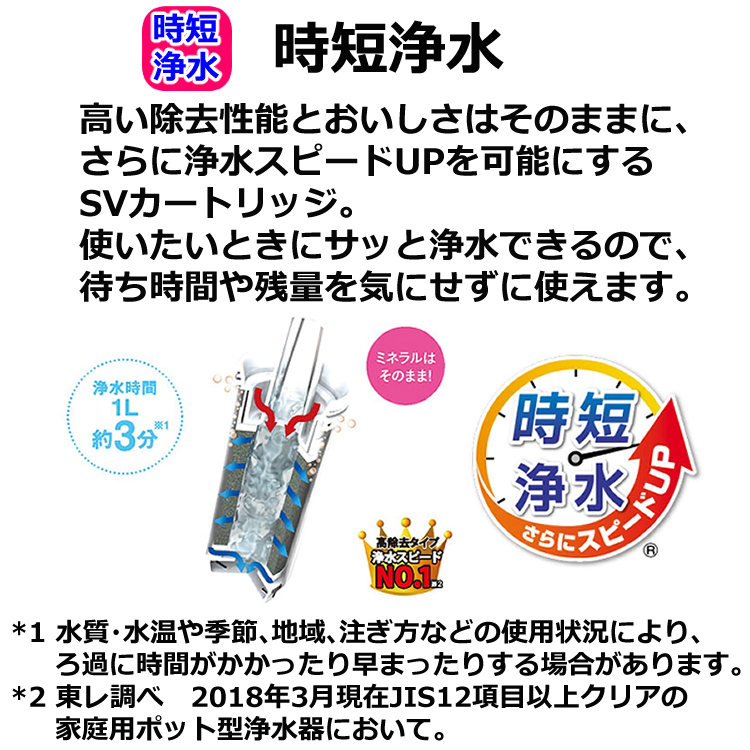 ・高い除去性能とおいしさはそのままに、さらに浄水スピードUPを可能にするSVカートリッジ