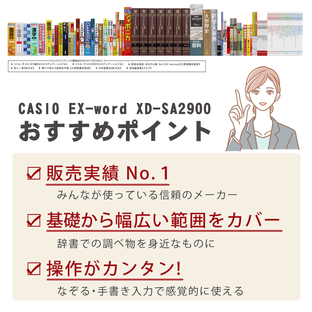 | ▼カシオ (CASIO) 電子辞書 エクスワード (EX-word) XD-SA2900 小学生モデル 【メーカー保証】1年間 【付属品】タッチペン1本・単3形アルカリ乾電池2本 【生産国】中国 |