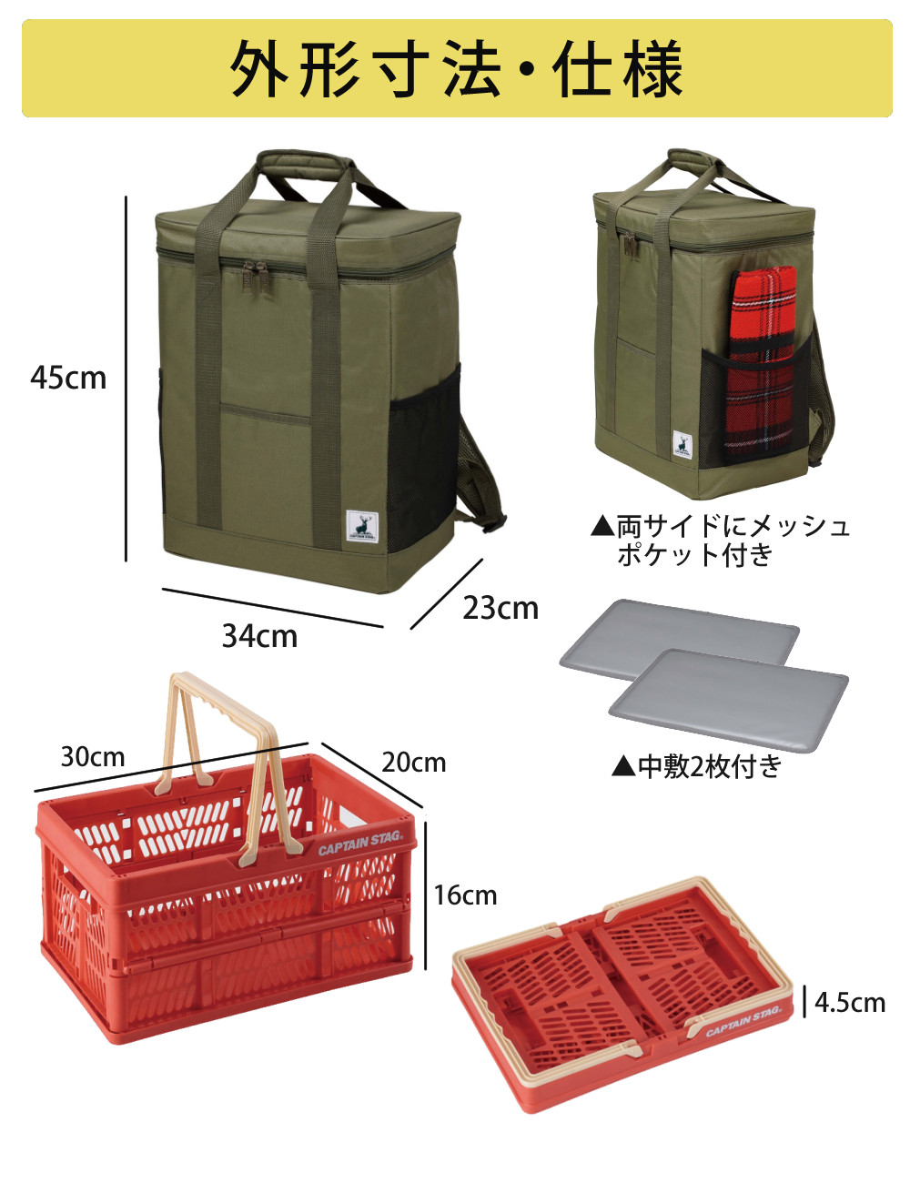 | 1)キャプテンスタッグ リュック型クーラーバッグ ×1個 【生産国】中国 |