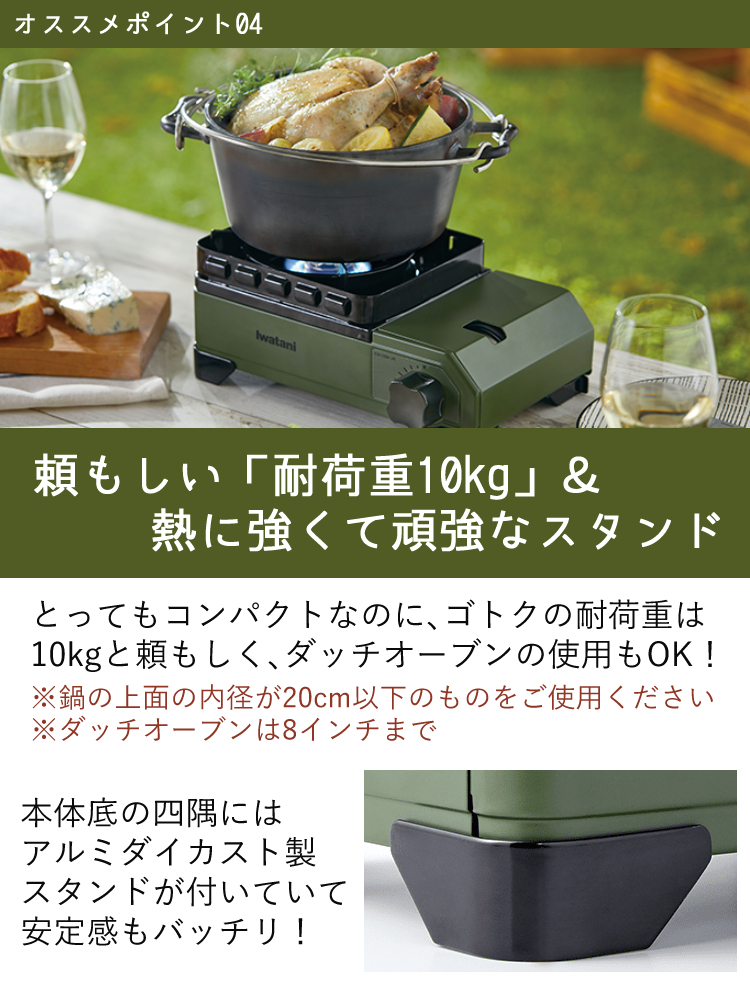 | 使用ガス | イワタニカセットガス、イワタニカセットガスパワーゴールド、イワタニカセットガスジュニア |