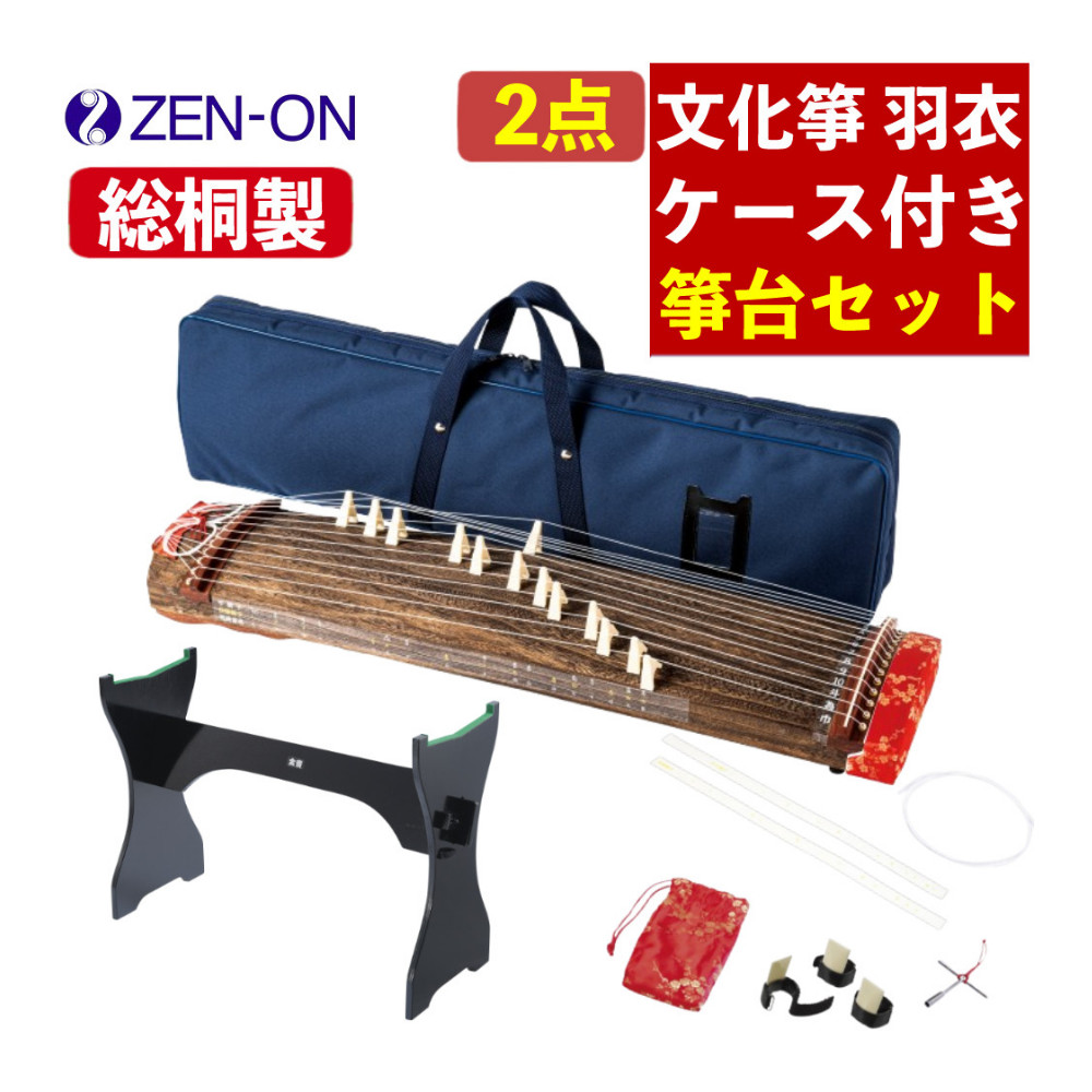| 1)全音 文化箏 羽衣 学校教育用 ZK-40 【付属品】ソフトケース / 磯シール(学校用・一般用の2種類)/ 替糸 / どれみシール /小物袋(箏柱13個入り)/ T字ハンドル / 無料DVD申込書 |
