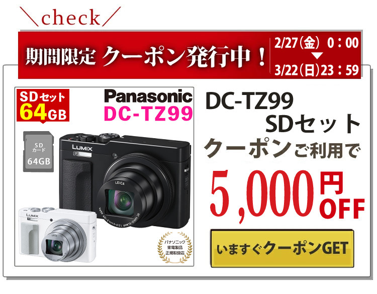 | 1)Panasonic パナソニック LUMIX ルミックス DC-TZ99 【メーカー保証】1年間 【生産国】中国 【付属品】バッテリーパック、ACアダプター、USB接続ケーブル、ハンドストラップ |