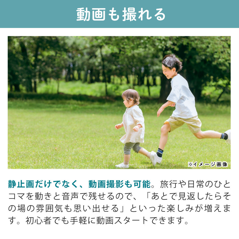 軽量コンパクトで日常の景色を気軽に撮るお散歩カメラとしてお使いいただけます。