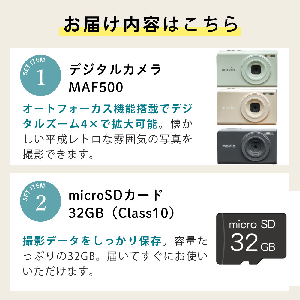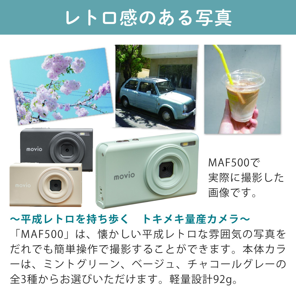 「MAF500」は、懐かしい平成レトロな雰囲気の写真をだれでも簡単操作で撮影することができます。