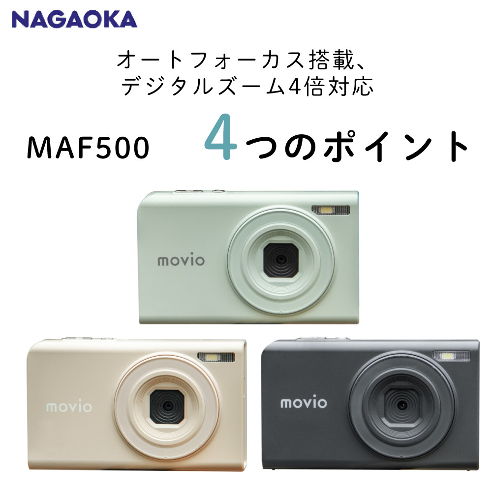 | 1)NAGAOKA デジタルカメラ MAF500 【メーカー保証】1年間 【付属品】ストラップ、充電ケーブル、ポーチ、リチウムイオン充電池、取扱説明書兼保証書 |