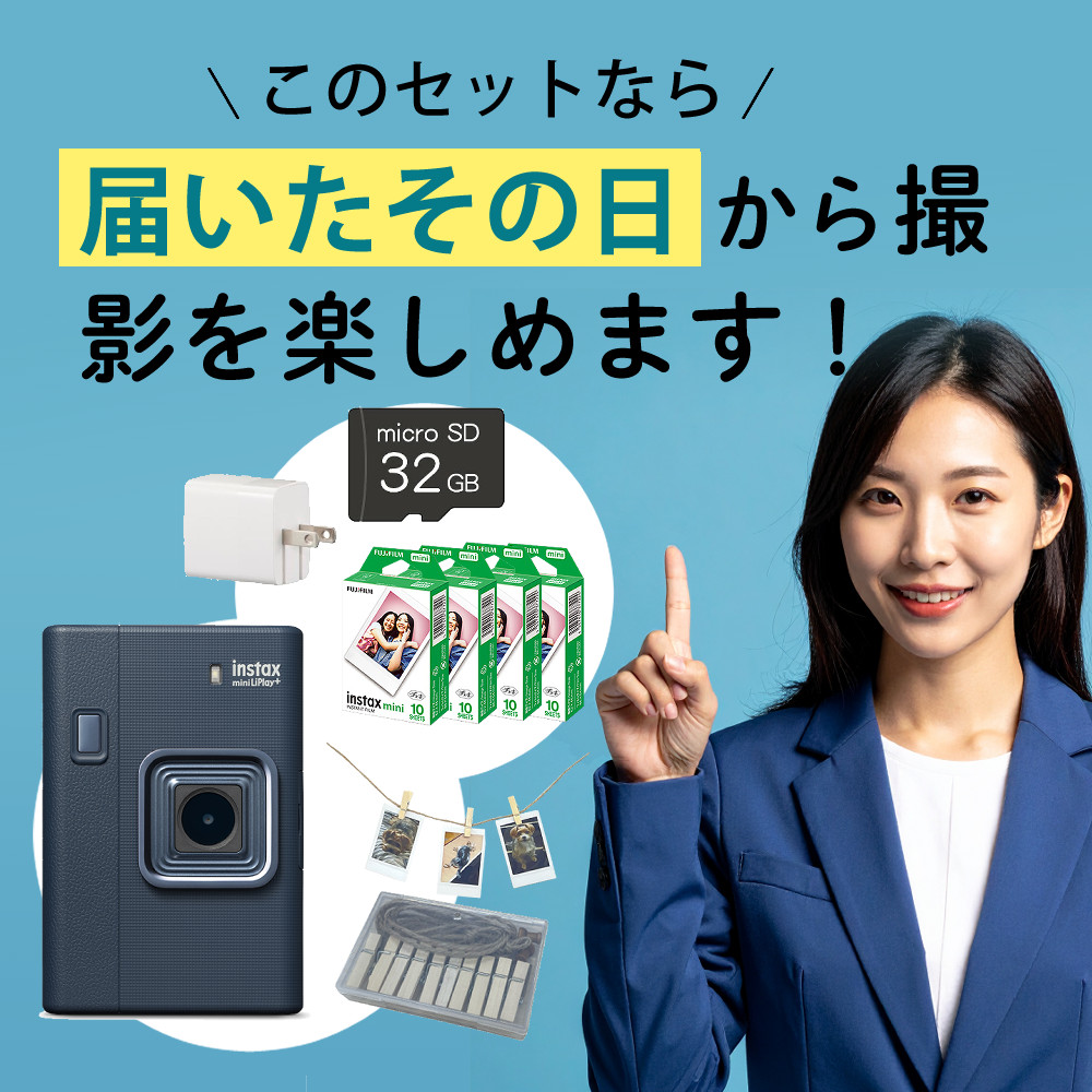 | 1)富士フイルム instax mini LiPlay+ リプレイプラス ミッドナイトブル― 【メーカー保証】1年間 【付属品】USB Type-C ケーブル、 ハンドストラップ、使用説明書 |