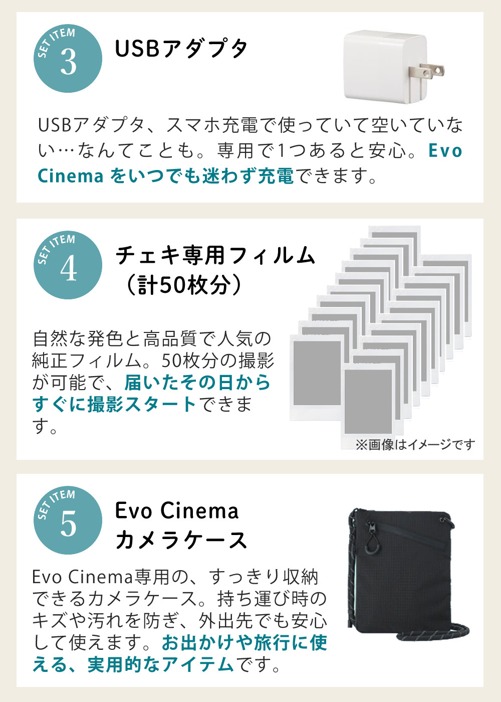 カメラとチェキフィルムの融合で、あなたの日常を映画のように彩ります。