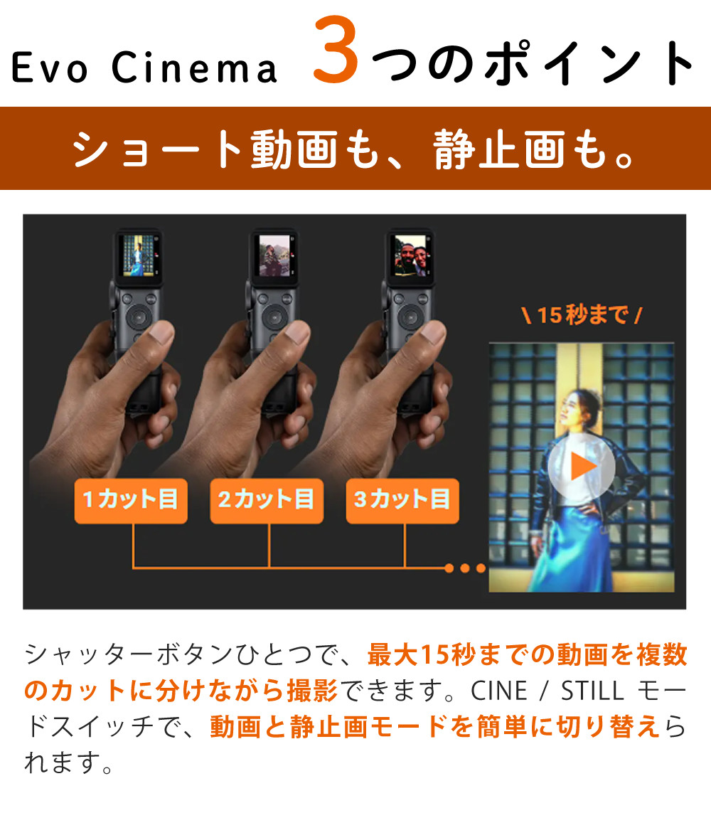 USB Type-C充電対応で扱いやすく、シネマ風のフィルム表現で感動の一枚を残せます。