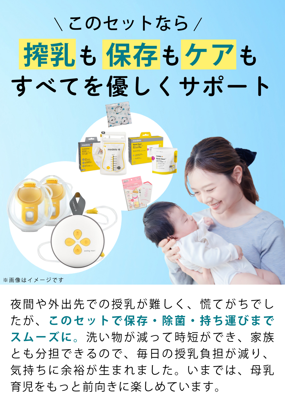 搾乳時や授乳時、お手入れの時など様々な場面でご使用いただけます。