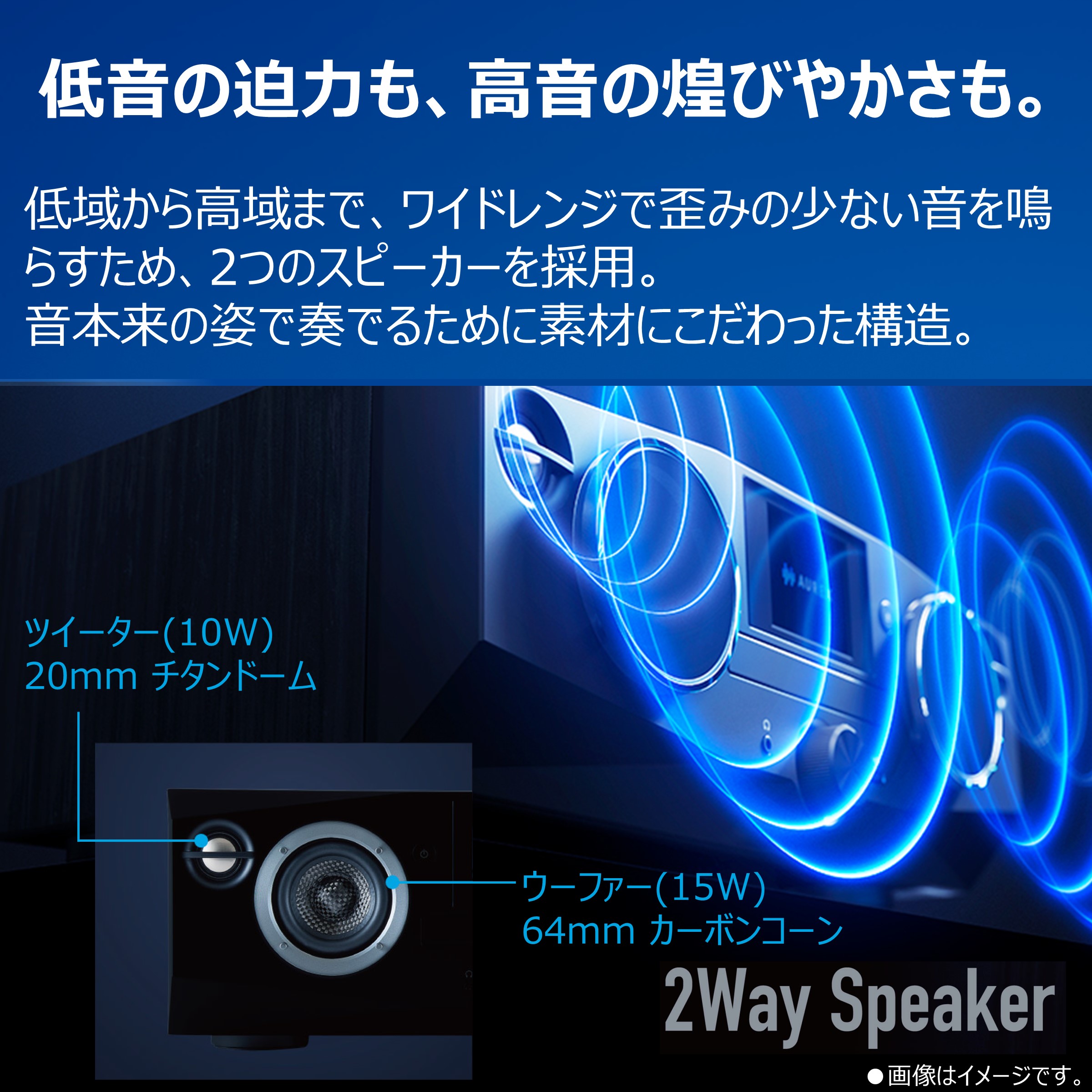 ※ツィーターとウーファー専用のマルチアンプを搭載(総合出力50W)。