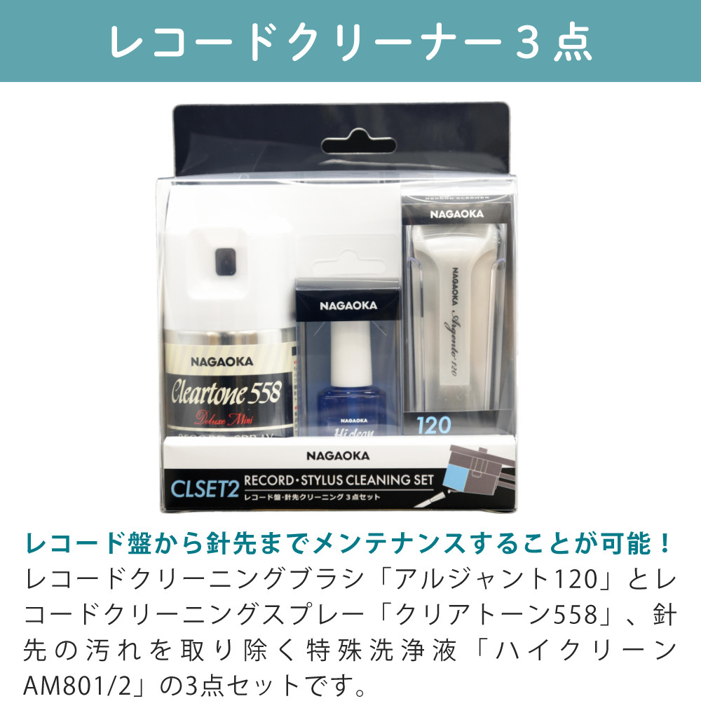 レコードクリーニングブラシ「アルジャント120」と、レコードクリーニングスプレー「クリアトーン558」、| 型番 | NCLSET2 |