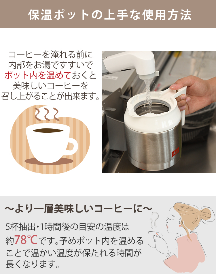 ●お手入れカンタンで注ぎやすい 、ワンタッチ・ステンレスポット