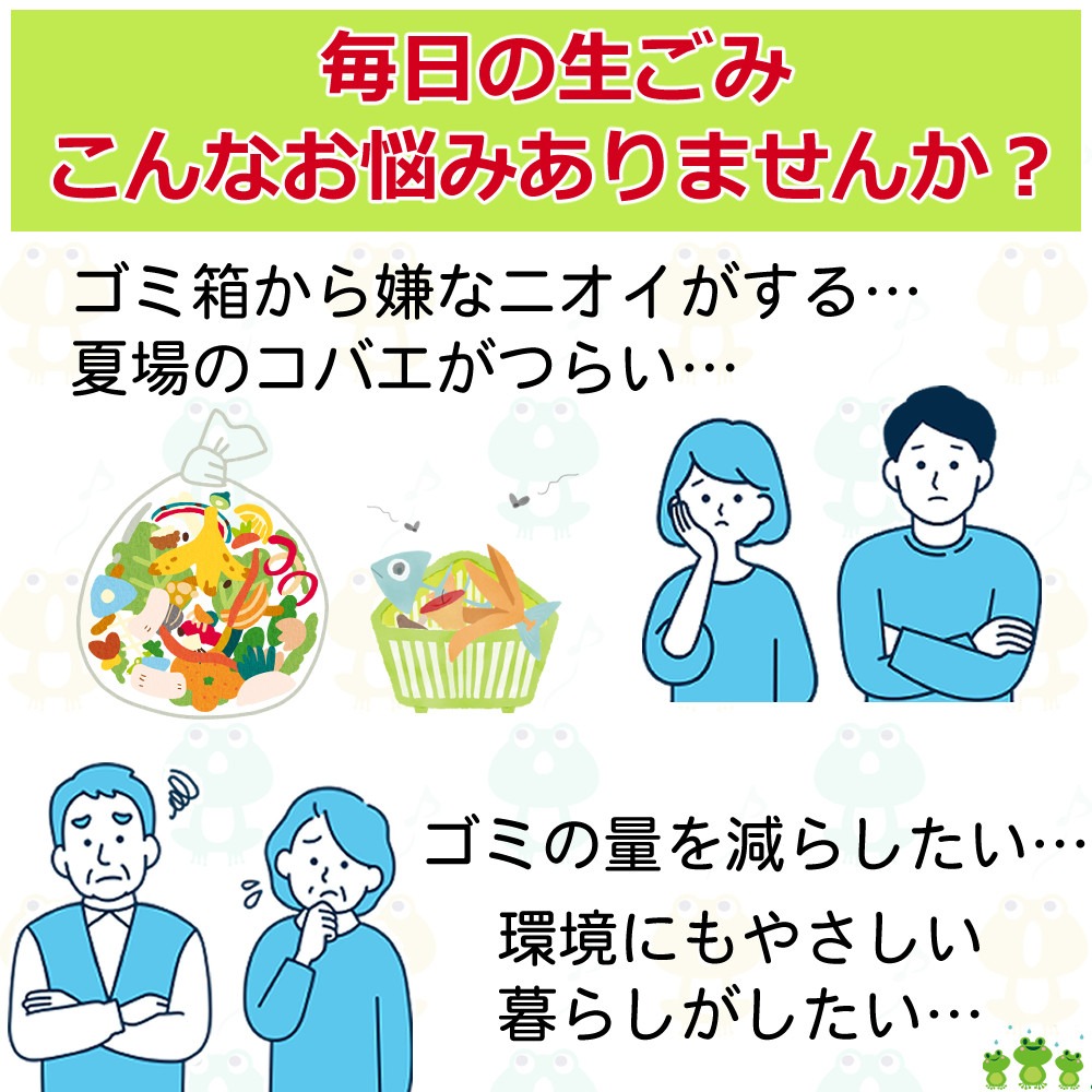 電気代ゼロで、環境にも家計にもやさしい生ごみ処理機です。