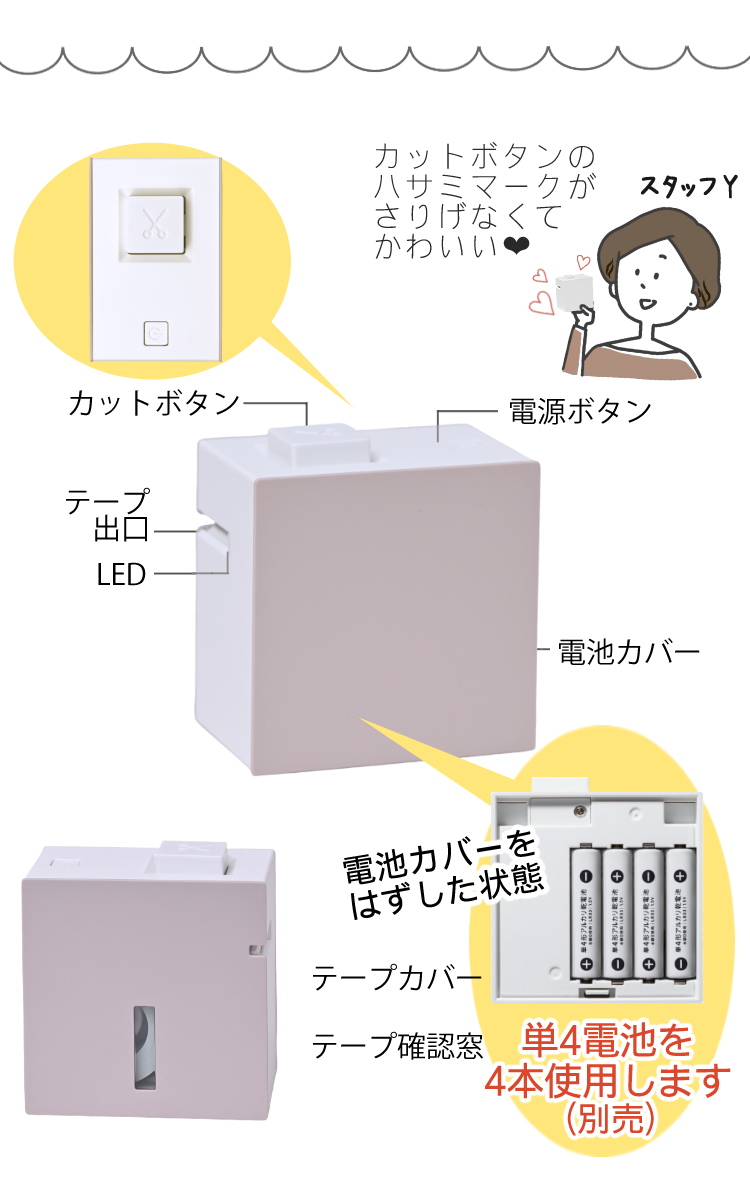 | 本体寸法 | 約71(W)×46(D)×76(H)mm※カットボタン含む |