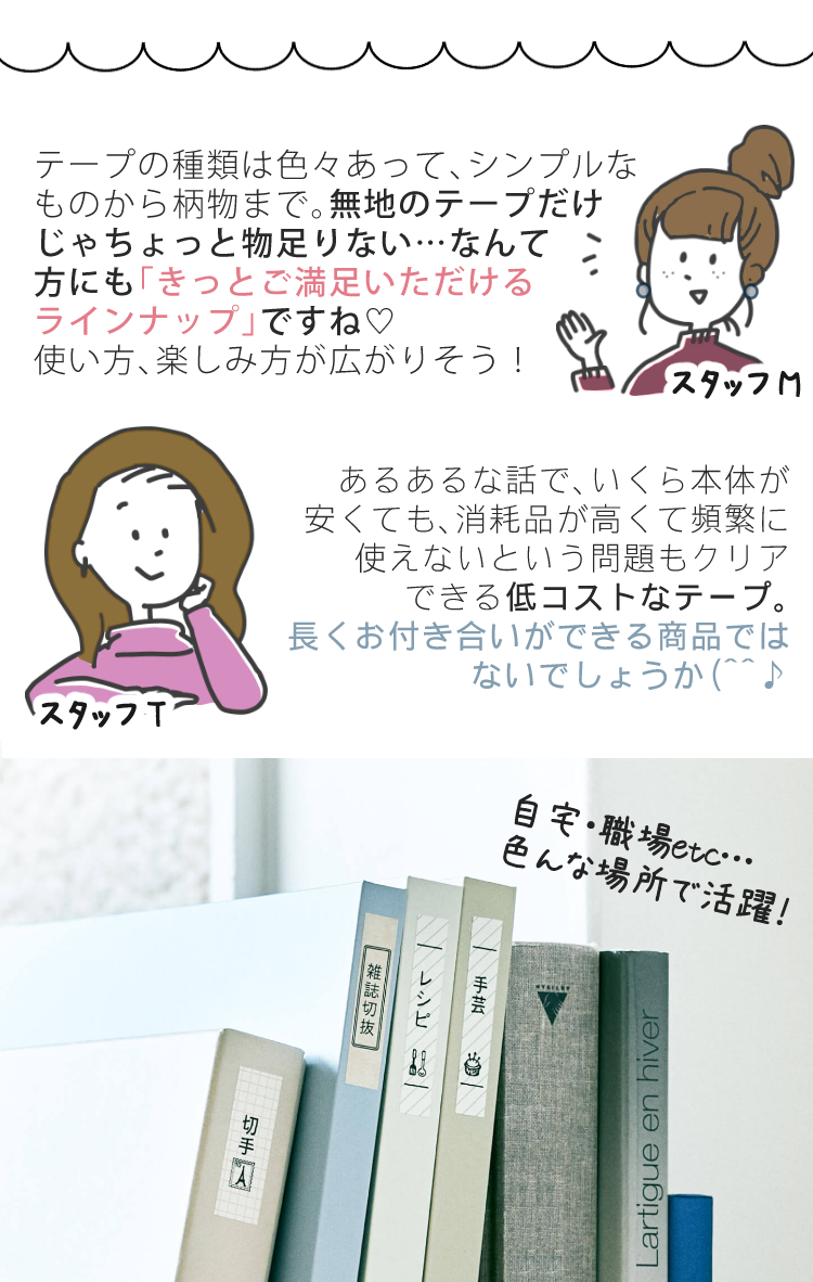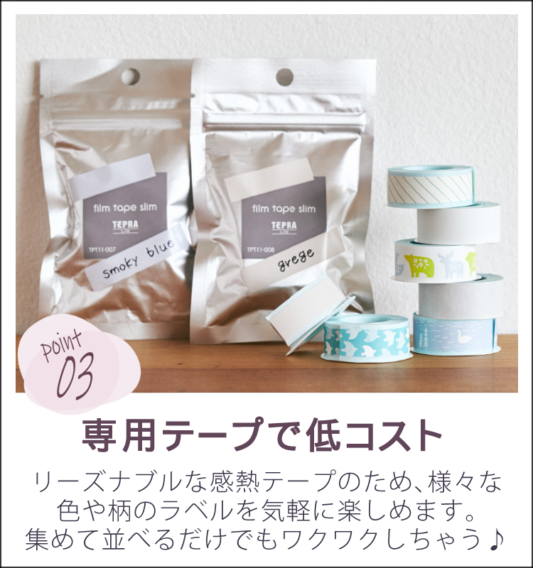 リーズナブルな感熱テープのため 低コスト(コストパフォーマンス/コスパ◎)で、気軽に様々な柄のテープを楽しめます。