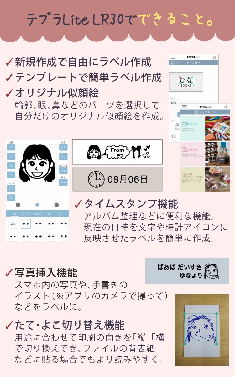 ◆スマホで撮った写真や手書きメッセージをラベルに印刷できる