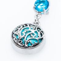 唐草模様のラウンドモチーフの中にターコイズ風ストーンを閉じ込めたへそピアス(バナナバーベル)です。