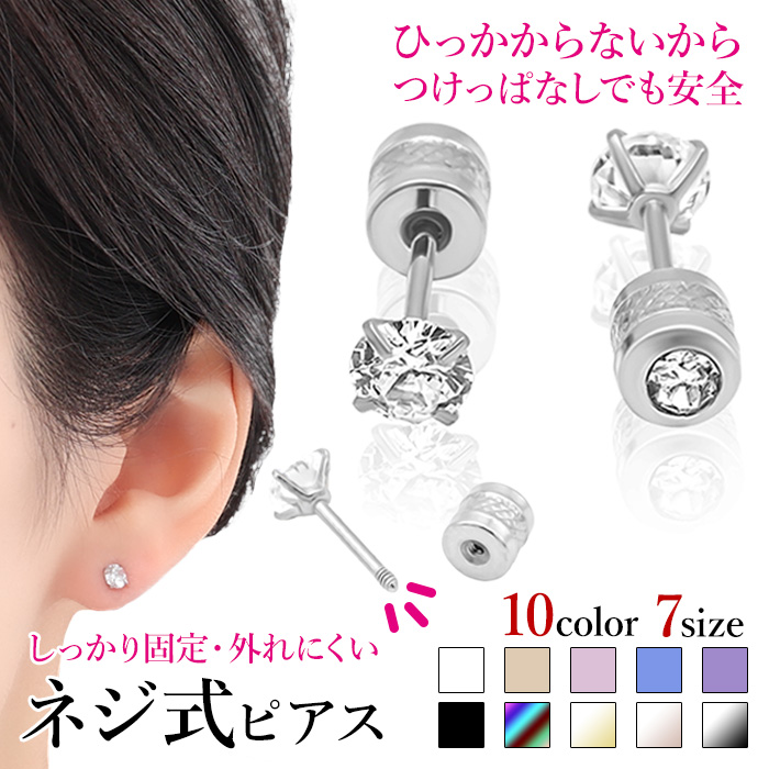 ピアス 金属アレルギー対応 つけっぱなし レディース メンズ 両耳用 ネジ式キャッチ サージカルステンレス 立爪ジュエル