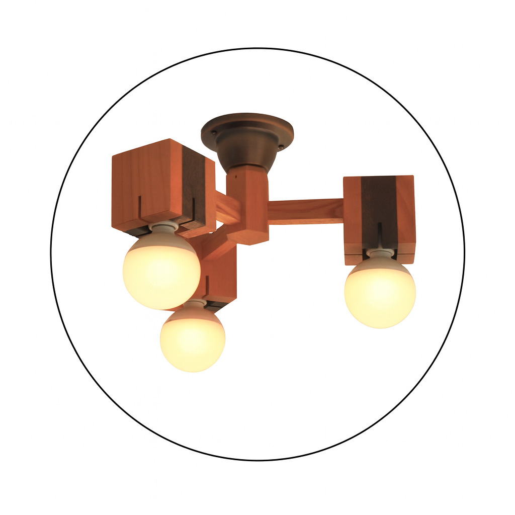 木のあたたかみと、まろやかな光の電球が美しく調和した3灯シーリングライト。