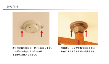 取り付け:引掛けローゼットの両側のネジ穴にねじを2本止めるだけ