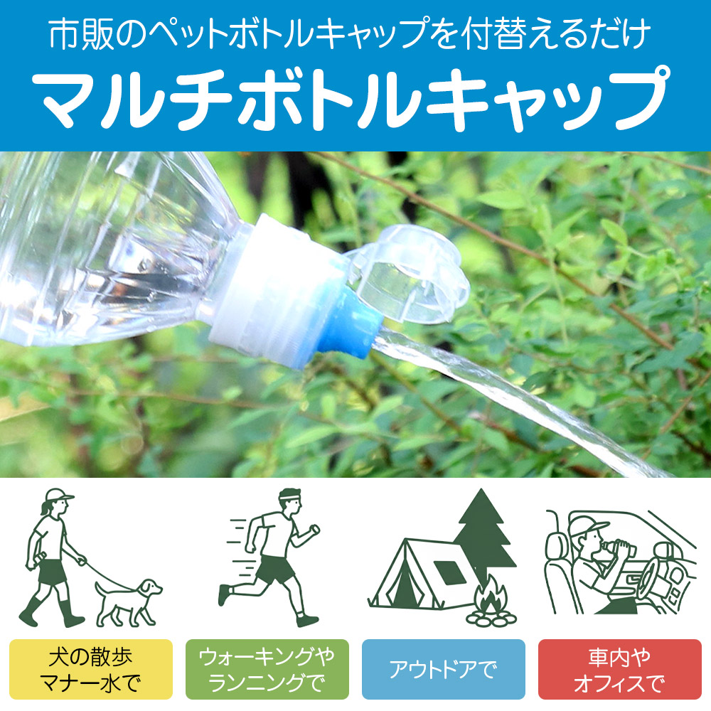 ペットボトル キャップ 犬 散歩 マナー水 スポーツ ランニング ウォーキング アウトドア キャンプ オフィス 車内 漏れない 4個セット 青 緑 赤 黄色 ピーチパウ