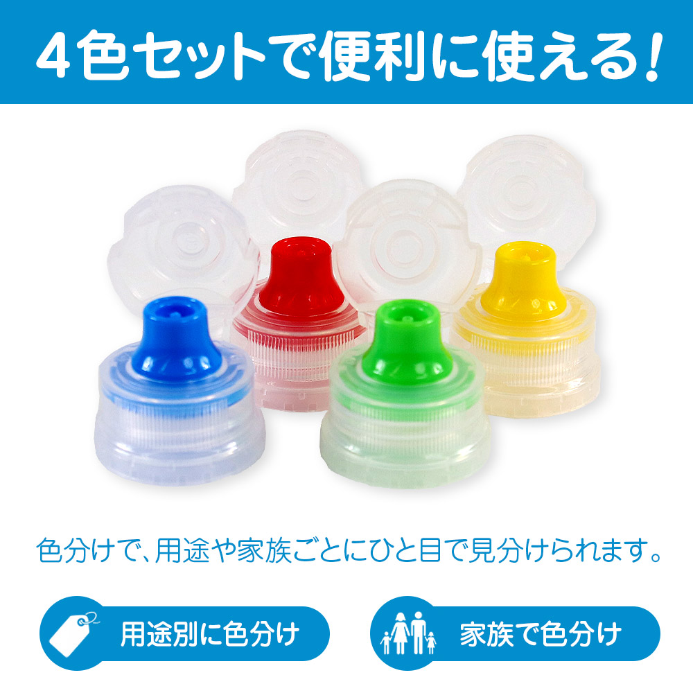 ●4色セットだから、用途別に色分けしたり、家族で色を分けて使えば、自分のボトルがひと目でわかり便利です。