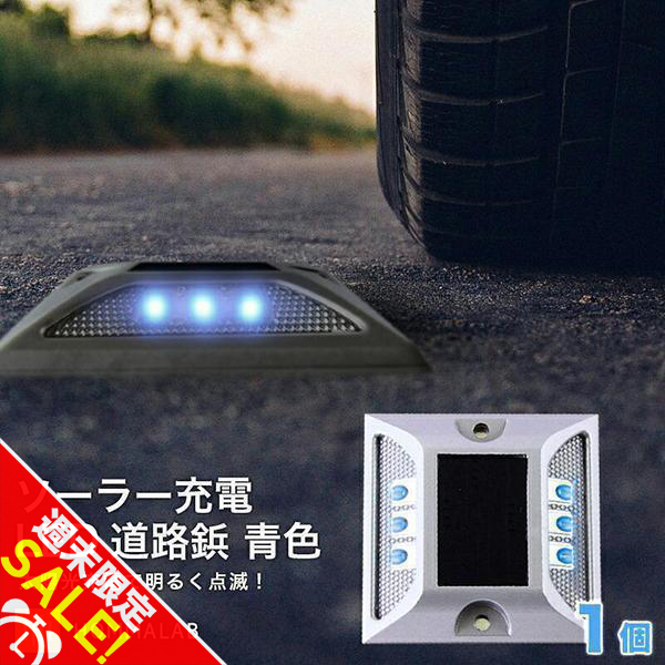 | 商品名 | ソーラー自動充電6灯LED 駐車場/道路鋲 青色 1個 用取付ボルト3本セット |