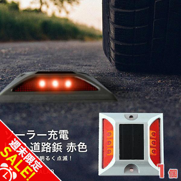 | 商品名 | ソーラー自動充電6灯LED 駐車場/道路鋲 赤色 1個 用取付ボルト3本セット |