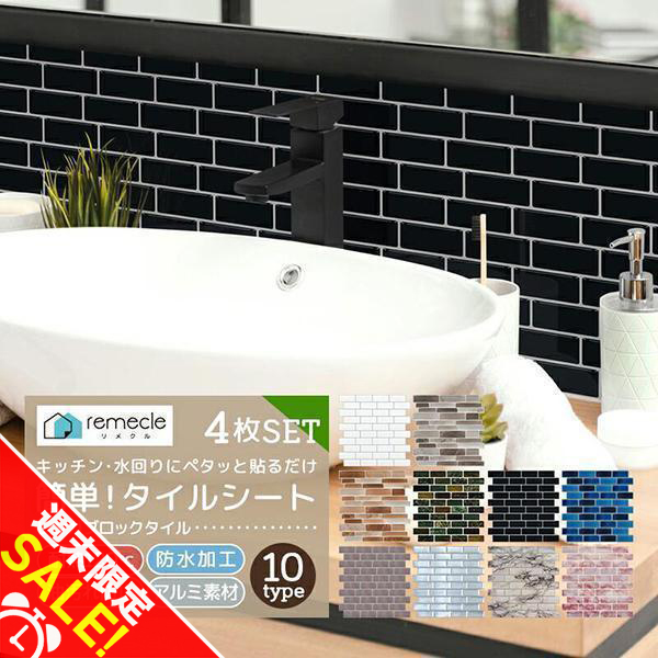 | 商品名 | キッチンタイルシール 4枚セット remecle リメクル |