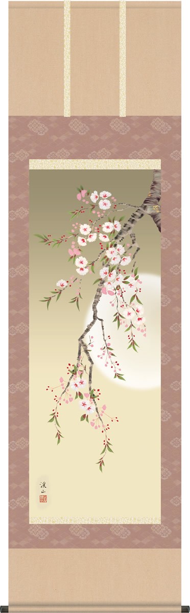 掛け軸 掛軸-夜桜/伊藤 渓山[尺五 桐箱 風鎮 和室 床の間 花鳥画 かけじく モダン インテリア 壁掛け 安い 贈物 ギフト 日常 年中 飾る]幅54.5×高さ190cm