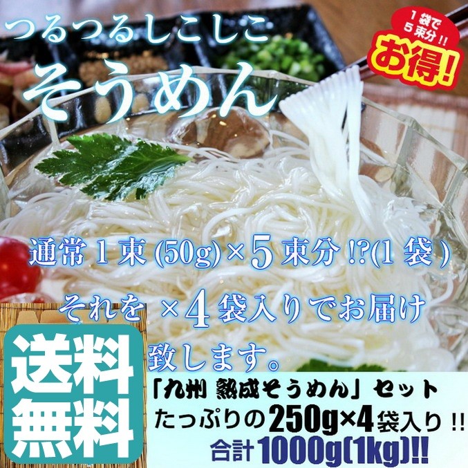 そうめん 素麺 お取り寄せ 熟成そうめん250g×4袋セット たっぷり1キロ入り つるつる食感 人気涼麺 お好みのめんつゆで お試しグルメギフト