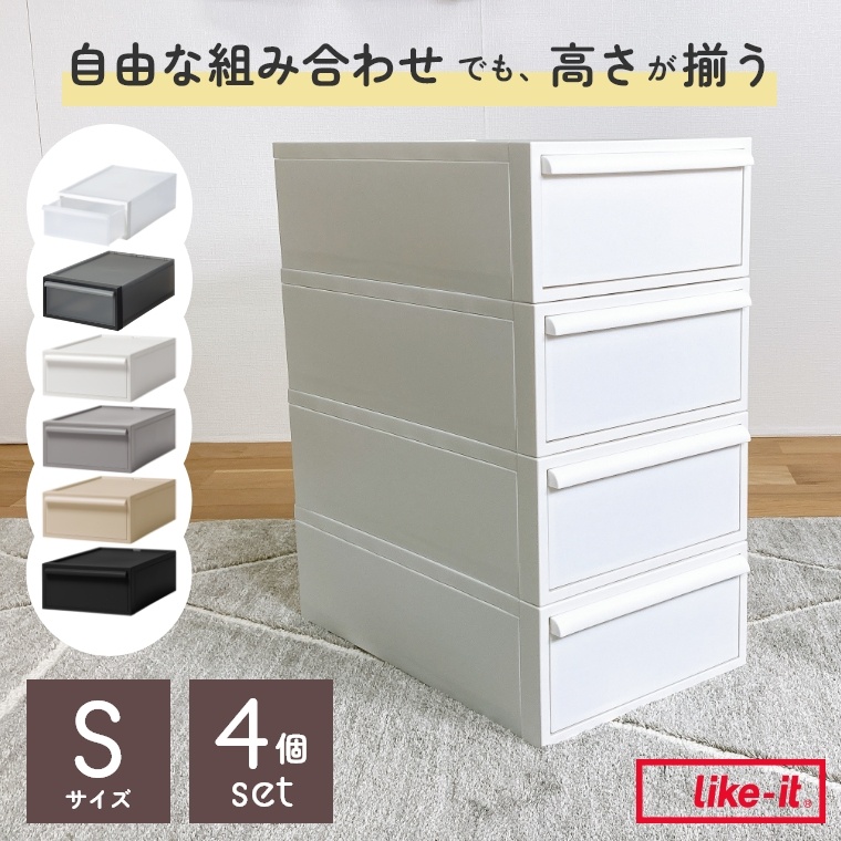 【同色4個セット】 自由な組み合わせでも高さが揃う クローゼットシステム 引出しタイプ Sサイズ CS-D1 ライクイット