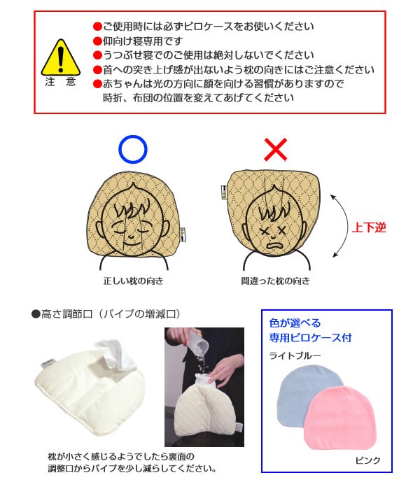 ★付属の専用ピロカバーはライトブルー、ピンクの2色からお選びいただけます。