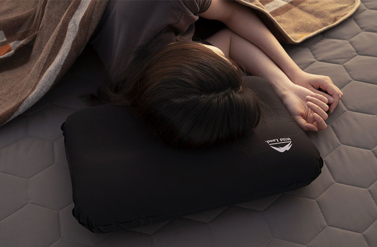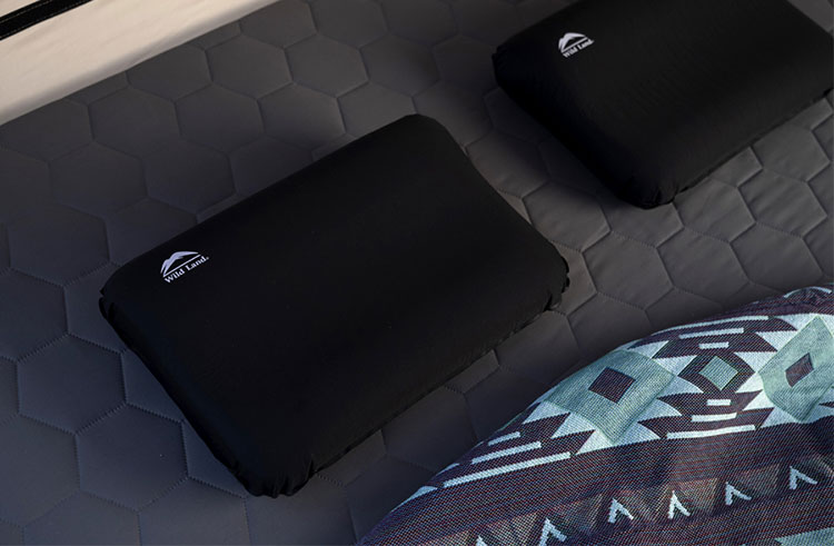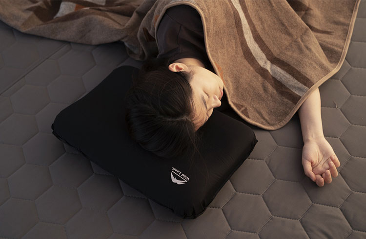 Wild Landインフレータブルフォームピローは、キャンプや旅行を快適にする枕です。圧縮可能かつセルフインフレータブル仕様で、付属のコンパクトな収納バッグに収まり、取り出して数秒でふくらみ本来の形になります。
