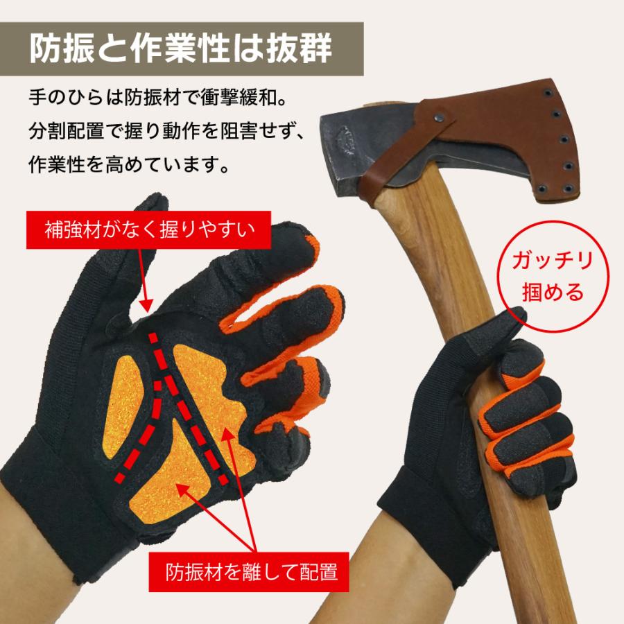 また、ピンポイントに防振材を配置し、チェンソーや草刈り機での作業でも振動を軽減することができます。