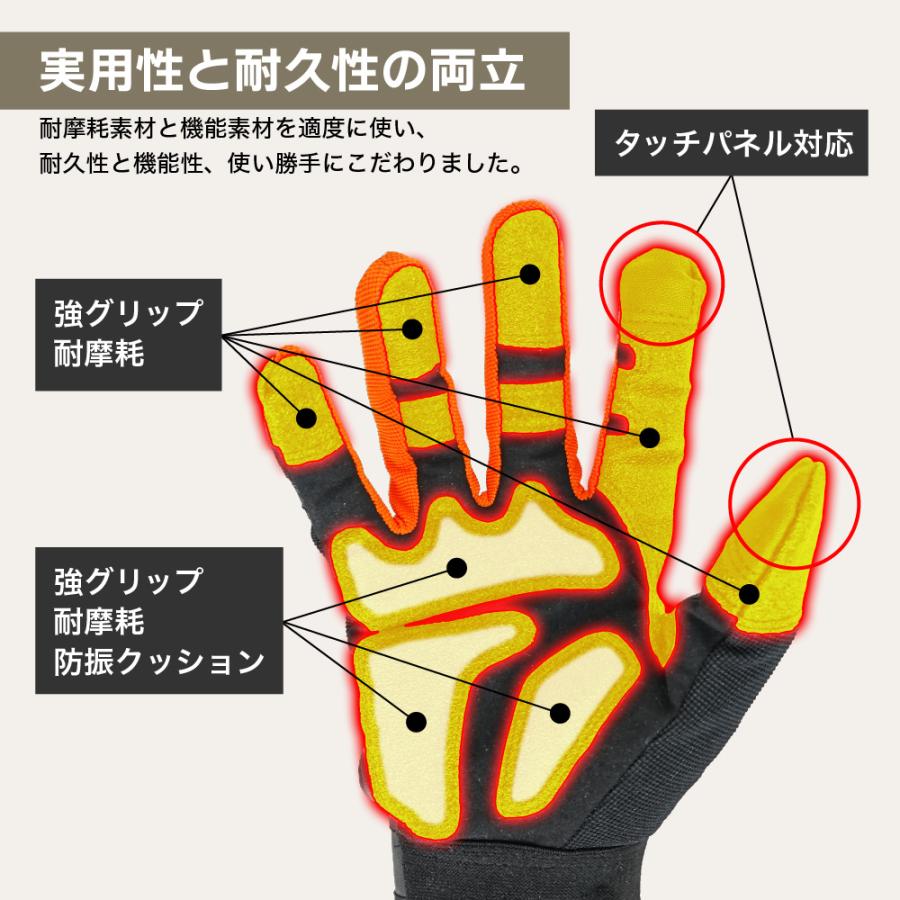 PLOW 作業グローブ 耐摩耗・防振・通気性良好 タッチパネル対応 ワークグローブ