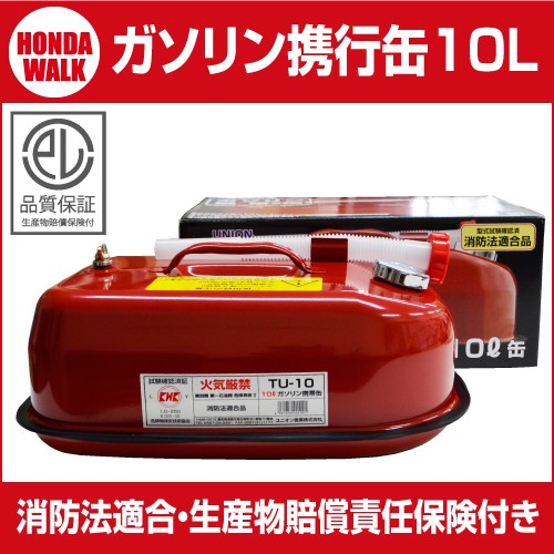 危険物保安技術協会試験確認済みの鋼板製ガソリン携行缶です。発電機の燃料の保管には、必ずガソリン携行缶をご利用ください。ガソリンの携帯には、金属製の容器の使用が消防法により義務付けられています。ポリタンクではガソリンスタンドで給油を受けることができません。