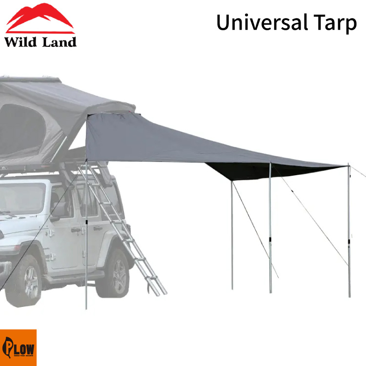 このルーフトップテント用オーニングタープは、Normandyシリーズ、Pathfinderシリーズ、Wild Cruiser、Desert Cruiser、Rock Cruiser、Bush Cruiserなど、すべてのWild Landルーフトップテントに対応します。210Dリップストップオックスフォード生地にシルバーコーティングを施し、UPF50+の紫外線防止性能を備えています。タープはルーフトップテント上部にバックルで接続し、テント内で過ごす際に日差しや雨を防ぎます。また、ルーフトップテントがなくても車両に直接取り付け、サンシェードとして単独使用することも可能です。