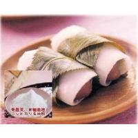 5、4を一つずつ、しずく型にまとめて笹に挟む。笹の両端を折り込み、長い軸を折り返して結ぶ