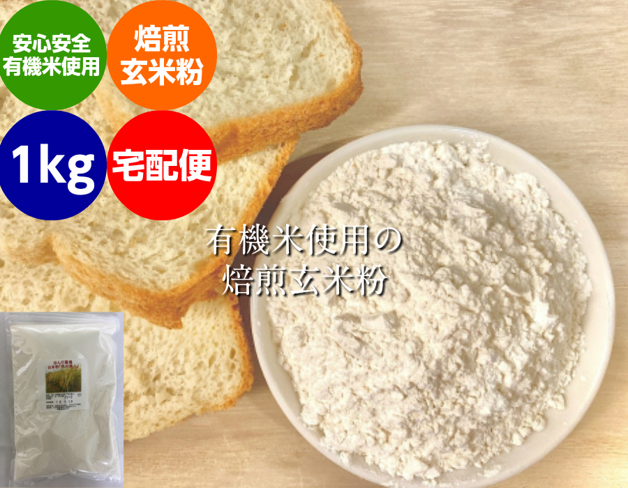無農薬米・有機米使用 焙煎 玄米粉 1kg 宅配便(送料別)コシヒカリ 米粉 安全安心