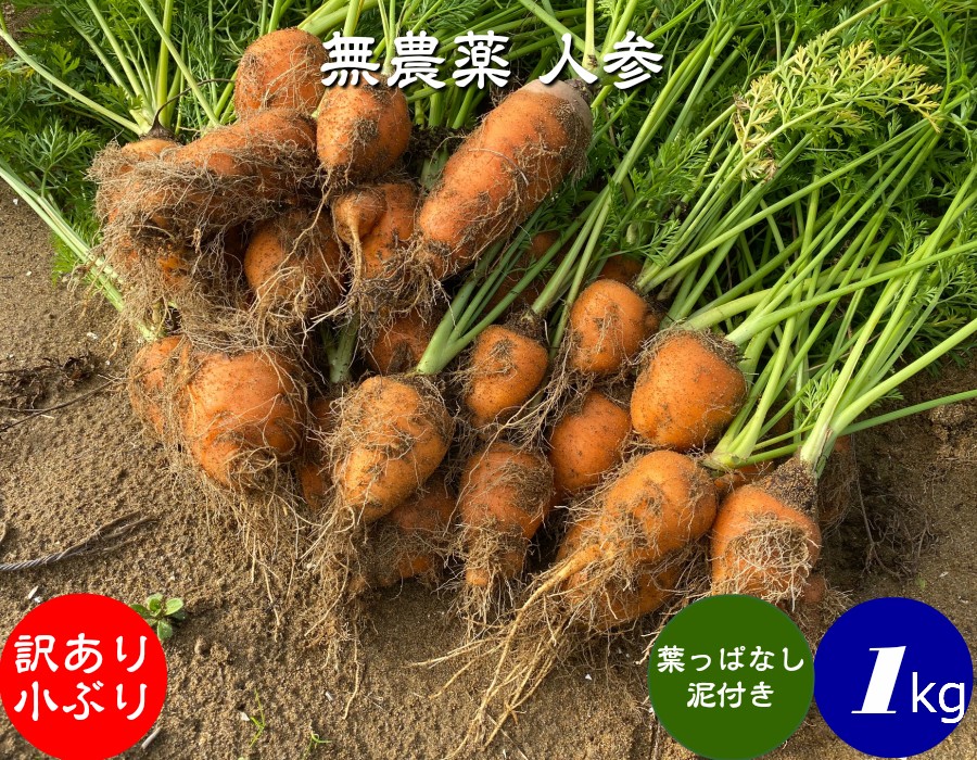無農薬 EM農法 わけあり 人参 小ぶり 【葉なし泥付き】(にんじん)1袋 1kg