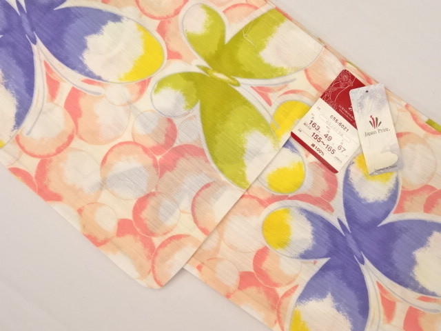 浴衣 ゆかた レディース プレタ 女性用 変わり透かし織り フリーサイズ No.181 水玉 ちょうちょ 蝶 綿100% 出来上がり 仕立て上がり