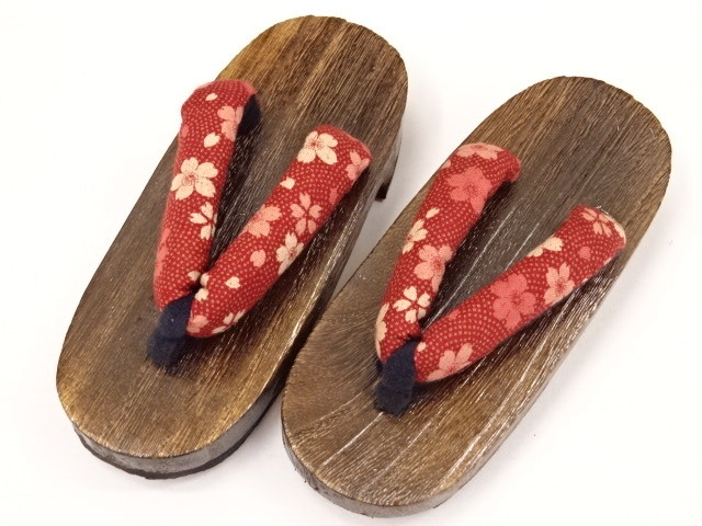 子供用 お子様用 下駄 台 17cm 鼻緒 エンジ レンガ茶赤 さくら 桜 女児 女の子 ガールズ 祭り 花火 つっかけ 鼻緒 太い やわらかい やさしい 指の力 かけっこ