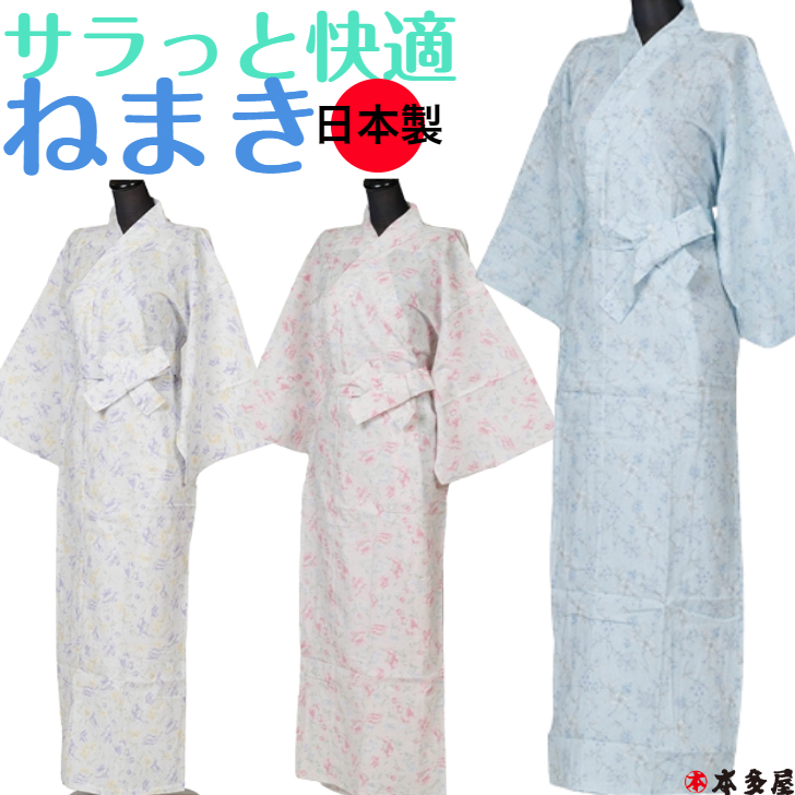 ねまき 寝巻き 寝間着 女性用 レディース 婦人 夏用 着物 浴衣 きもの ゆかた パジャマ 和装 涼しい 快適 綿100% コットン 日本製 母の日 プレゼント ギフト