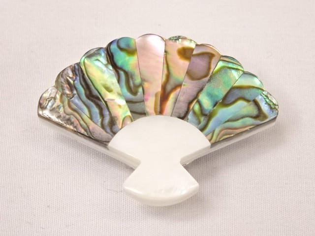 帯留め おびどめ 扇 おうぎ 末広 すえひろ 白貝 青貝 螺鈿 螺鈿細工 手作り ハンドメイド オンリーワン 世界に一つ 帯留め大きさ:約4.3cm×3.2cm